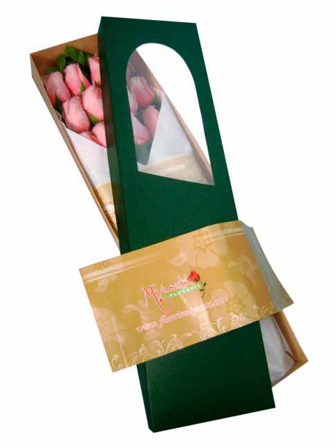 12 Rosas deslumbrantes, divinas rosas que encendieron mi amor... Caja de color verde con rosas rosadas importadas.