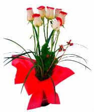Alfombra de rosas, quisiera pone a tus plantas Regar tu sendero florido, de cosas muy santas Amarte con fervor hasta la muerte, Ser un príncipe azul, para quererte Detalle con Rosas Arreglo floral con rosas importadas, follaje decorativo y lazo en una base de vidrio tipo florero.