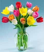 Cada noche un amor, disntinto arco iris, diferente vicion. Cada noche un amor, pero dentro de mi, solo se queda tu amor... Florero con hermosos tulipanes de variados colores y follaje.