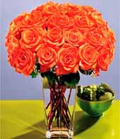 Si tuviese una rosa para cada vez que pienso en ti, estaría siempre paseando por un jardín , por eso estas rosas para ti de lo mejor de mi... Florero con ramo de 25 rosas color naranja importadas y follaje.