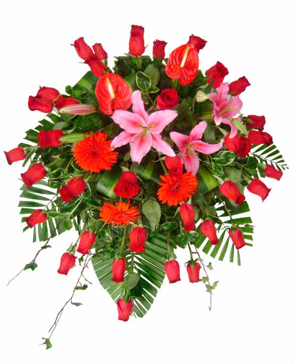 Ya mi espalda no resiste el peso de tu ausencia, el deseo de sentir tus labios y el roce de tu cuerpo se hacen cada día mas imprescindibles y aun entre lagrimas te confieso que no habrá mejora en mi sentir hasta que el milagro de tenerte no sea real de nuevo... Arreglo floral funebre tipo manto. Cuenta con rosas importadas, lilium, gerberas, anturios y follaje decorativo
