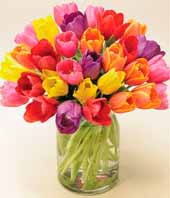 Florero con Tulipanes de varios coloresFlorero con tulipanes de colores diversos.